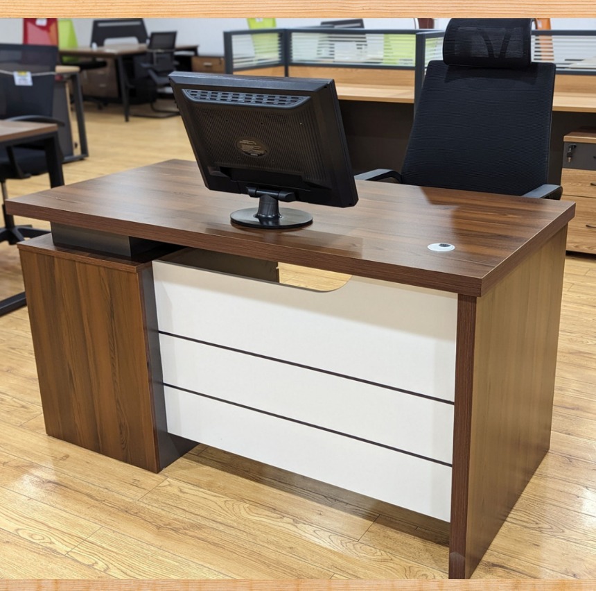 Moreover, the desk features built-in storage options, such as drawers or a side cabinet, that help organize files, stationery, and personal items. For instance, you can store daily-use documents in the drawers while keeping the desktop clean and clutter-free. Additionally, some models include lockable compartments, providing secure storage for confidential documents. Therefore, users can maintain both efficiency and organization.