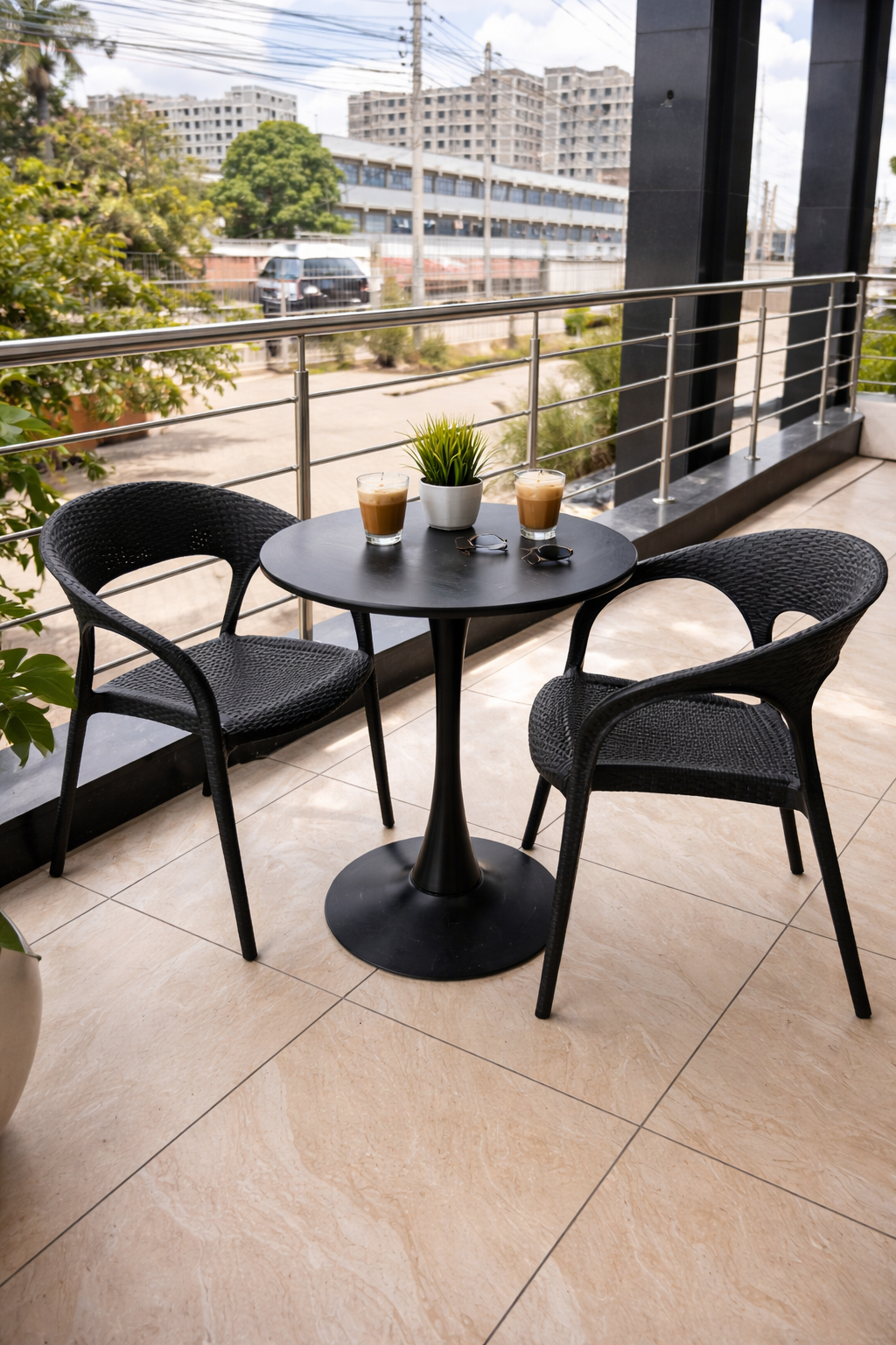 Upgrade your outdoor space with this modern 2-seater balcony bistro set, designed to bring style, comfort, and practicality to compact areas. To begin with, this set transforms even the smallest balcony into a cozy and functional retreat. Whether you have a balcony, terrace, patio, or café space, it helps you create an inviting atmosphere with ease.