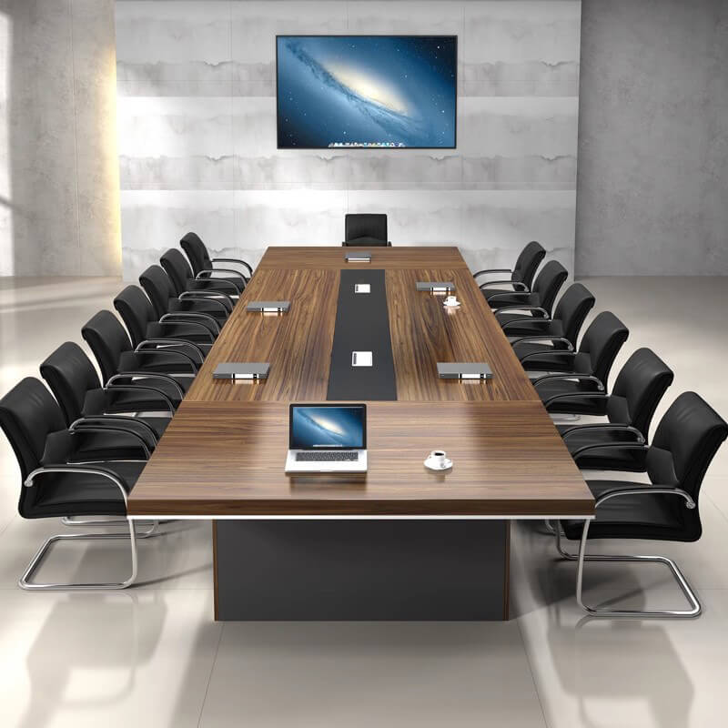 Beyond aesthetics, the table is designed for versatility. For example, it can be used for formal board meetings, collaborative workshops, client presentations, or team brainstorming sessions. In addition, its spacious design allows for easy placement of power outlets, conference phones, or multimedia equipment, ensuring a seamless meeting experience.