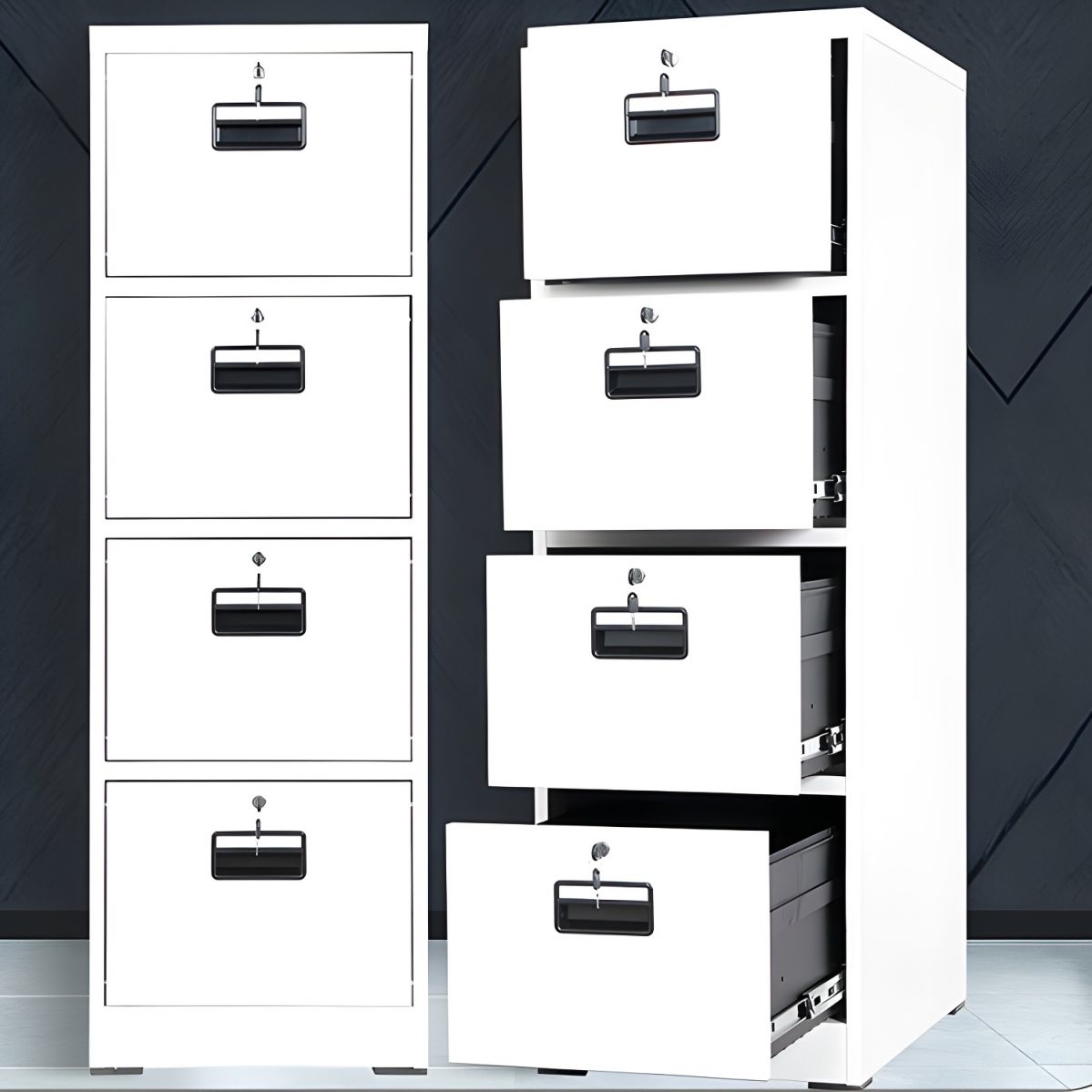 Keep your office organized with this 4-drawer file cabinet, designed to provide reliable document storage and long-lasting durability. Firstly, the four spacious drawers offer ample room for storing files, folders, and important office documents. At the same time, the vertical design helps save floor space while maximizing storage capacity.