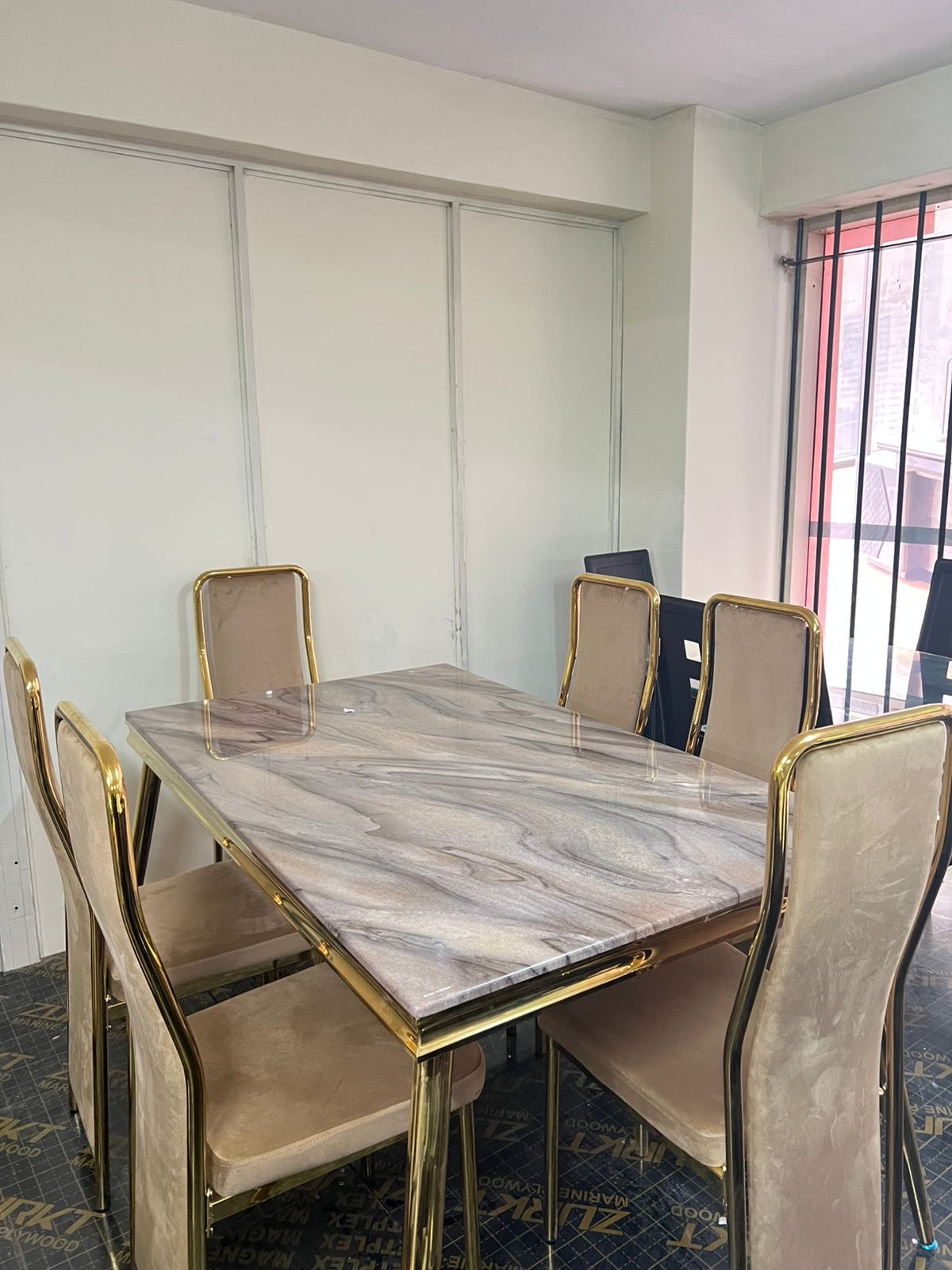 Elevate your dining experience with this elegant 6-seater marble top dining table, designed to combine luxury and functionality seamlessly. Featuring a polished marble surface and a sturdy base, it adds sophistication to any dining space while ensuring durability for everyday use or special gatherings. Its spacious design comfortably accommodates six people, making it ideal for family meals and entertaining guests.