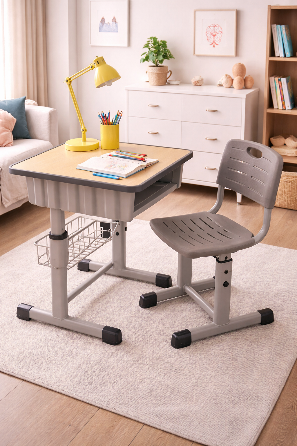 Set up a productive learning space with this adjustable kids study desk plus chair. It combines comfort, functionality, and smart design. Moreover, it supports proper posture for growing children. As a result, kids can study longer with less strain.