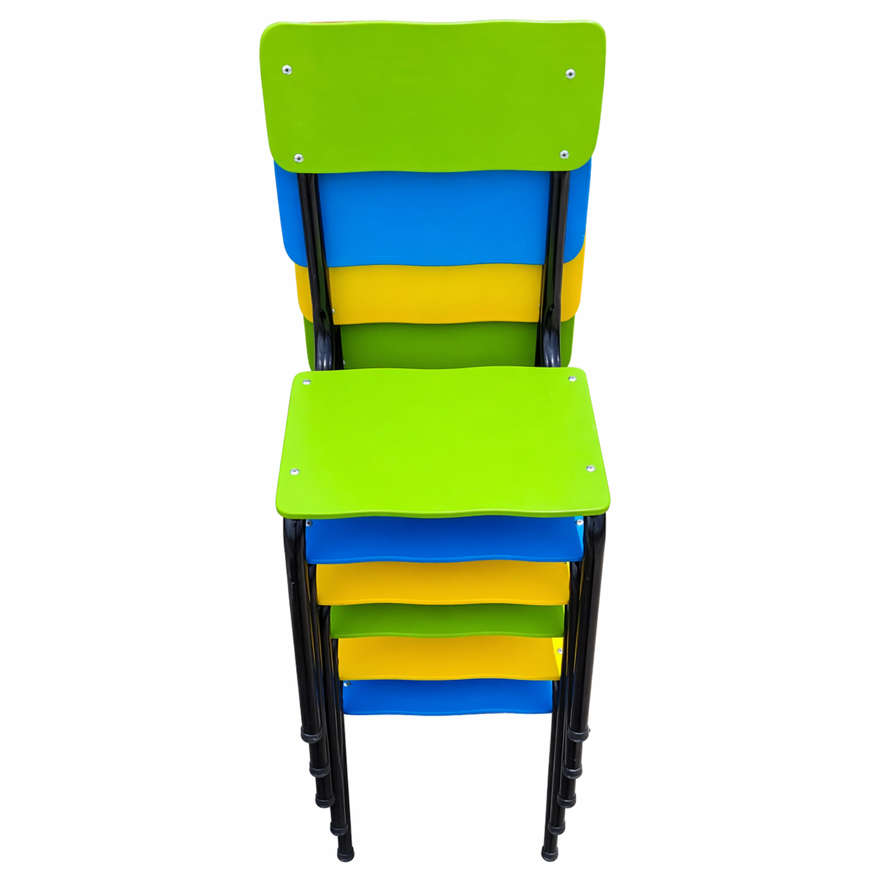 Moreover, the chairs come in vibrant multicolor finishes that make classrooms more lively and attractive. For instance, the mix of colors helps create a stimulating learning environment for young students. Consequently, this improves both mood and participation.