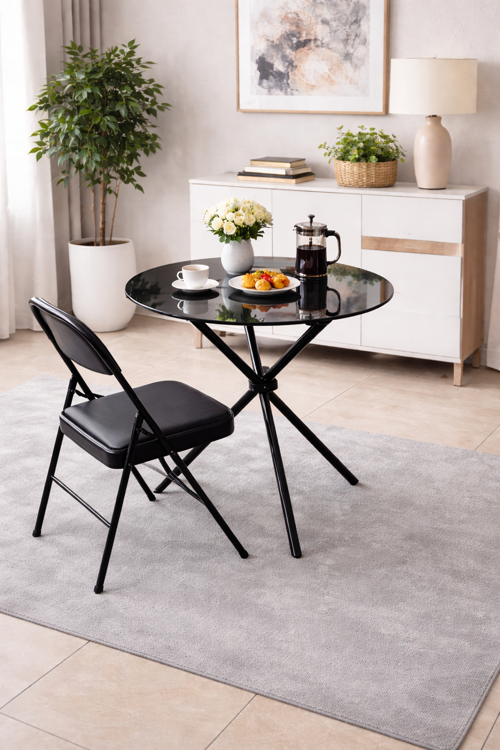 Furthermore, the table provides just enough surface area for meals, coffee, or work. At the same time, the chair is designed for convenience, often featuring a foldable or stackable design. Therefore, you can store it easily when not in use, saving even more space.