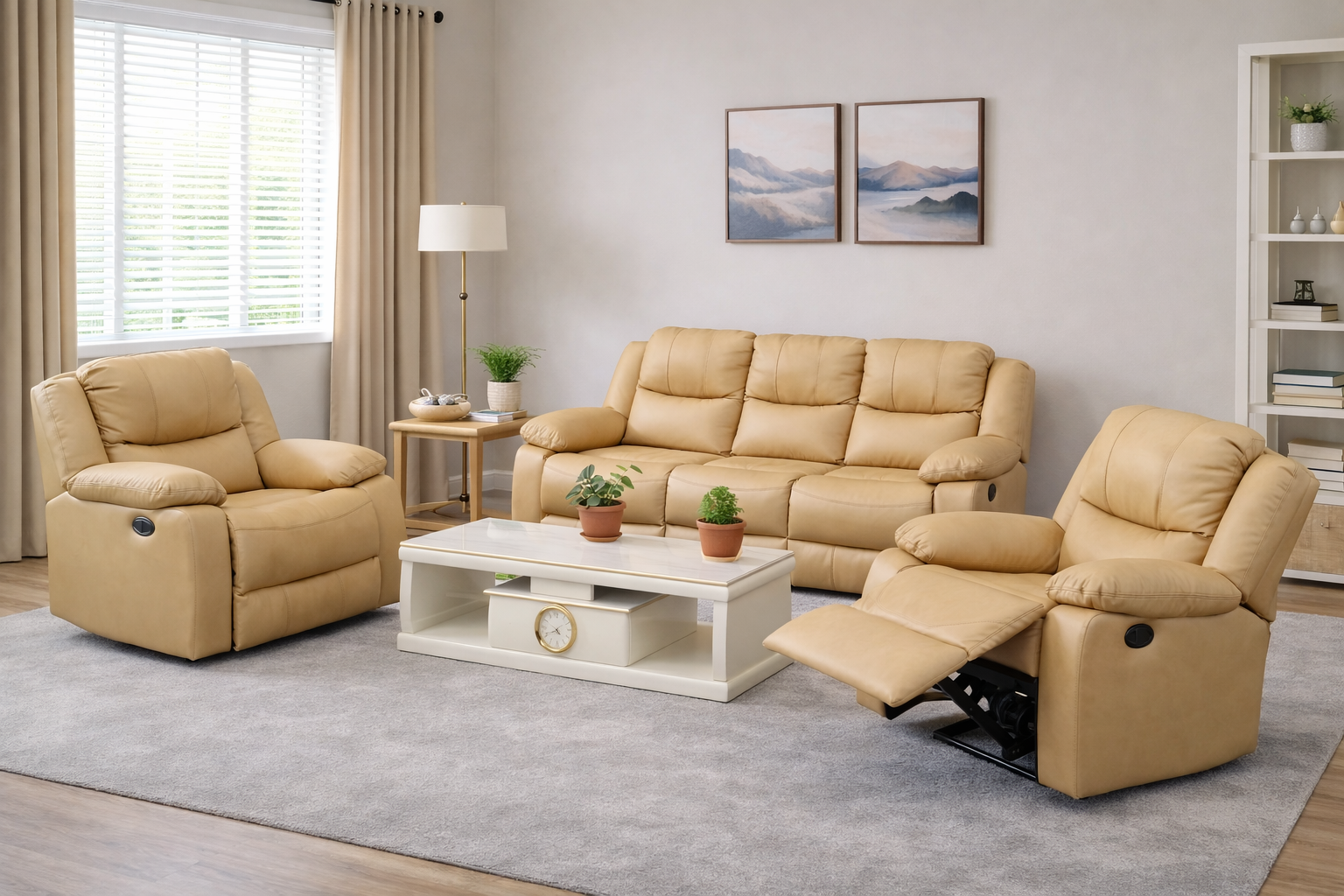 Moreover, the couch features a smooth reclining mechanism that allows each seat to tilt effortlessly. As a result, users can easily adjust the reclining angle to find the most comfortable position. This makes the couch ideal for long meetings, relaxation breaks, or home entertainment.