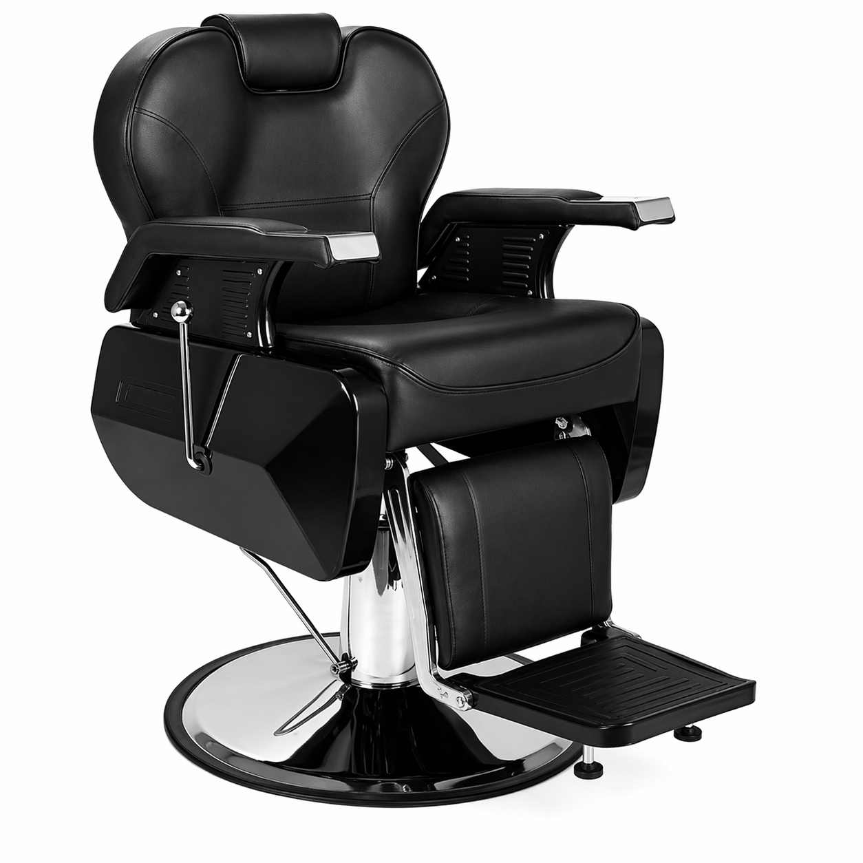 Equally important, the chair includes a reclining backrest that allows flexible positioning for different services such as shaving, haircuts, and grooming. Furthermore, the easy-to-use lever system ensures quick adjustments without interrupting workflow. Therefore, it improves efficiency and comfort for both the barber and the client.