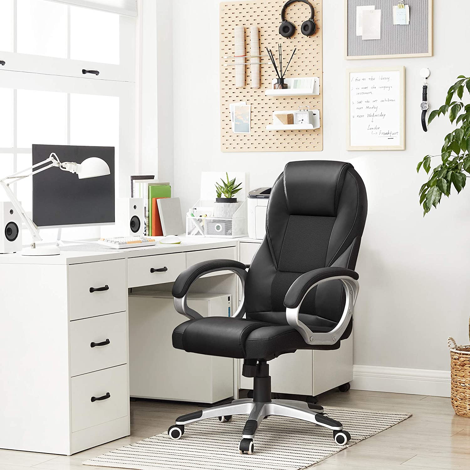 First of all, the chair features padded seating and a supportive leather back, offering excellent comfort for extended sitting. In addition, the breathable mesh enhances ventilation, keeping users cool throughout the day. Furthermore, the ergonomic backrest promotes proper posture, which reduces back strain and improves focus. Consequently, users can enjoy a productive and fatigue-free work experience.