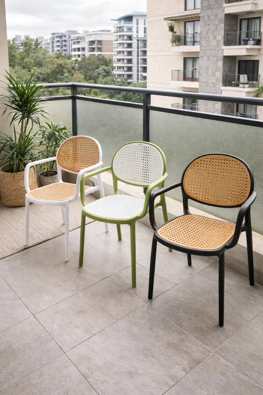 Moreover, the ergonomic curved backrest and arm support ensure maximum comfort, making them ideal for balconies, patios, gardens, cafés, and outdoor dining areas. In addition, the breathable woven design promotes airflow, keeping you cool even during warm days.
