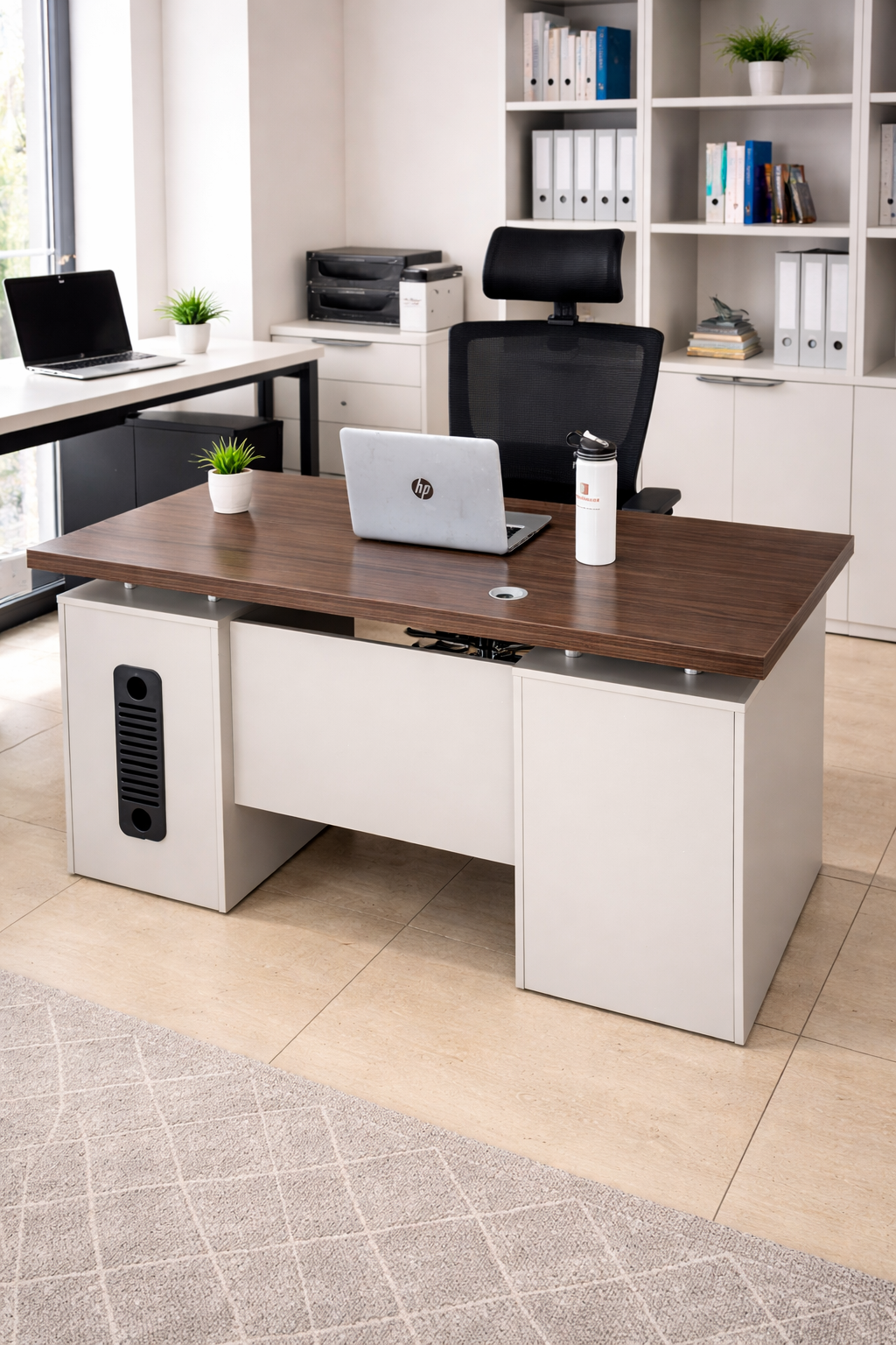 This modern office executive desk offers a perfect balance of style, durability, and functionality. It enhances productivity while elevating the look of your workspace. Moreover, its timeless design ensures it remains relevant for years.