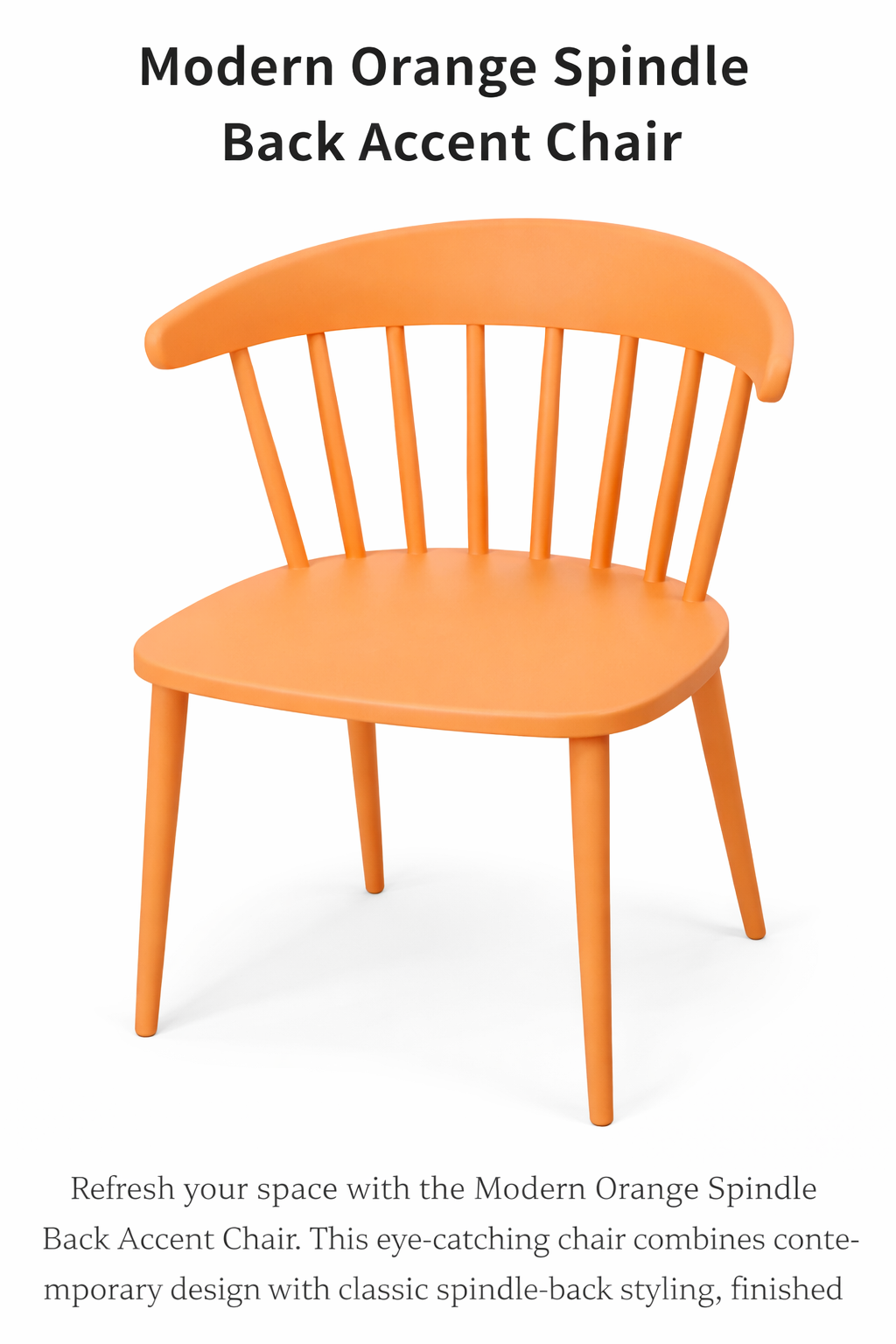 Bring warmth and personality to your space with the Modern Orange Spindle Back Accent Chair. Not only does this chair offer comfortable seating, but it also acts as a vibrant statement piece. The bright orange finish instantly energizes any room, while the spindle back design adds a timeless decorative touch. In addition, its modern silhouette blends beautifully with contemporary, minimalist, and Scandinavian interiors. As a result, it enhances both residential and commercial spaces with effortless style.